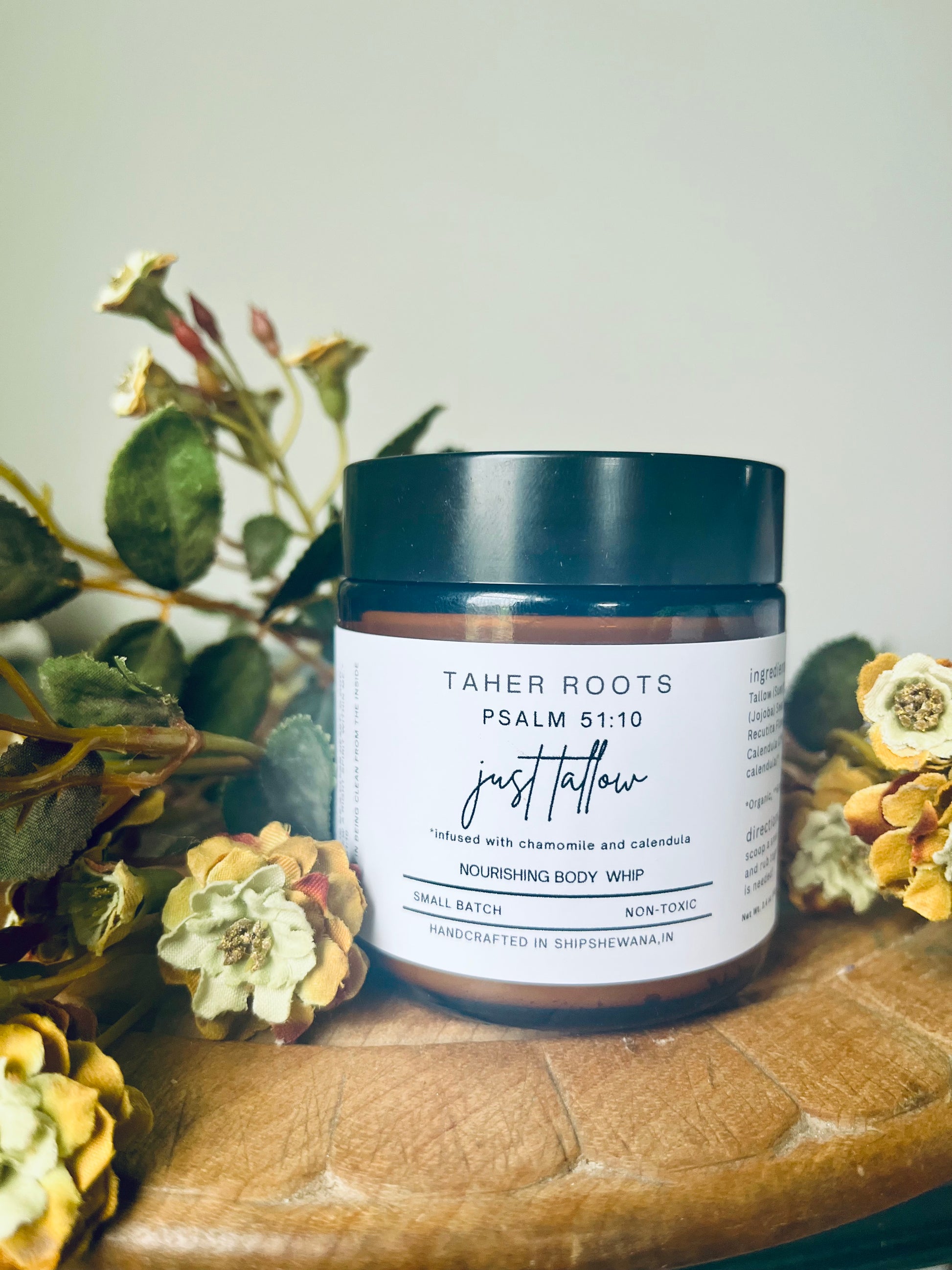 Experience the soothing and ultra-hydrating benefits of our handcrafted Just Tallow whip. Made in small batches with the finest ingredients, this whip will leave your skin feeling nourished and revitalized. Each 4 oz jar contains a net weight of approximately 2.4 oz of pure skincare goodness.